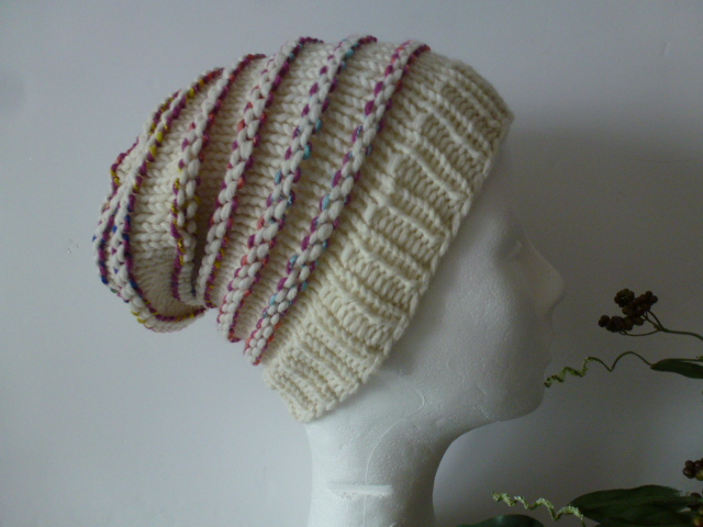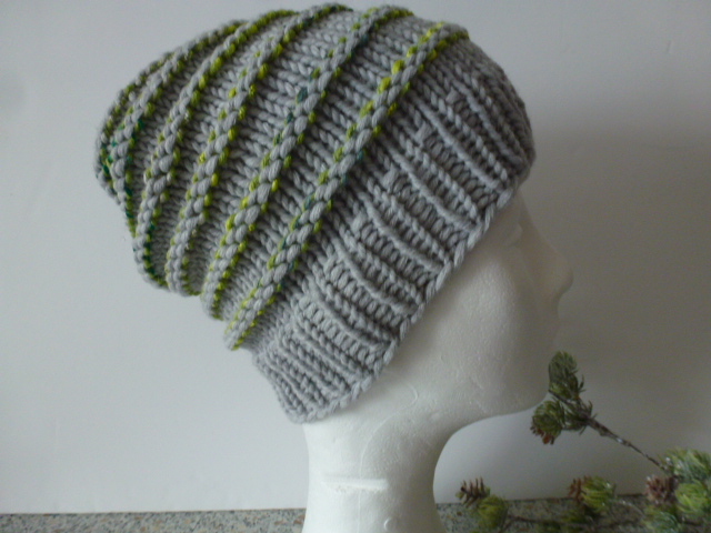 Schicke, handgestrickte Mütze in leichter Beanieform mit dezentem Querrippenmuster. Ein ca. 5cm breites Bündchen sorgt für guten Sitz. Die helle Grundfarbe wird durch das Querrippenmuster in buntem Kontrastgarn aufgepeppt. Ein tolles Modell, das sowohl für Kinder als auch für Erwachsene sehr gut geeignet ist.