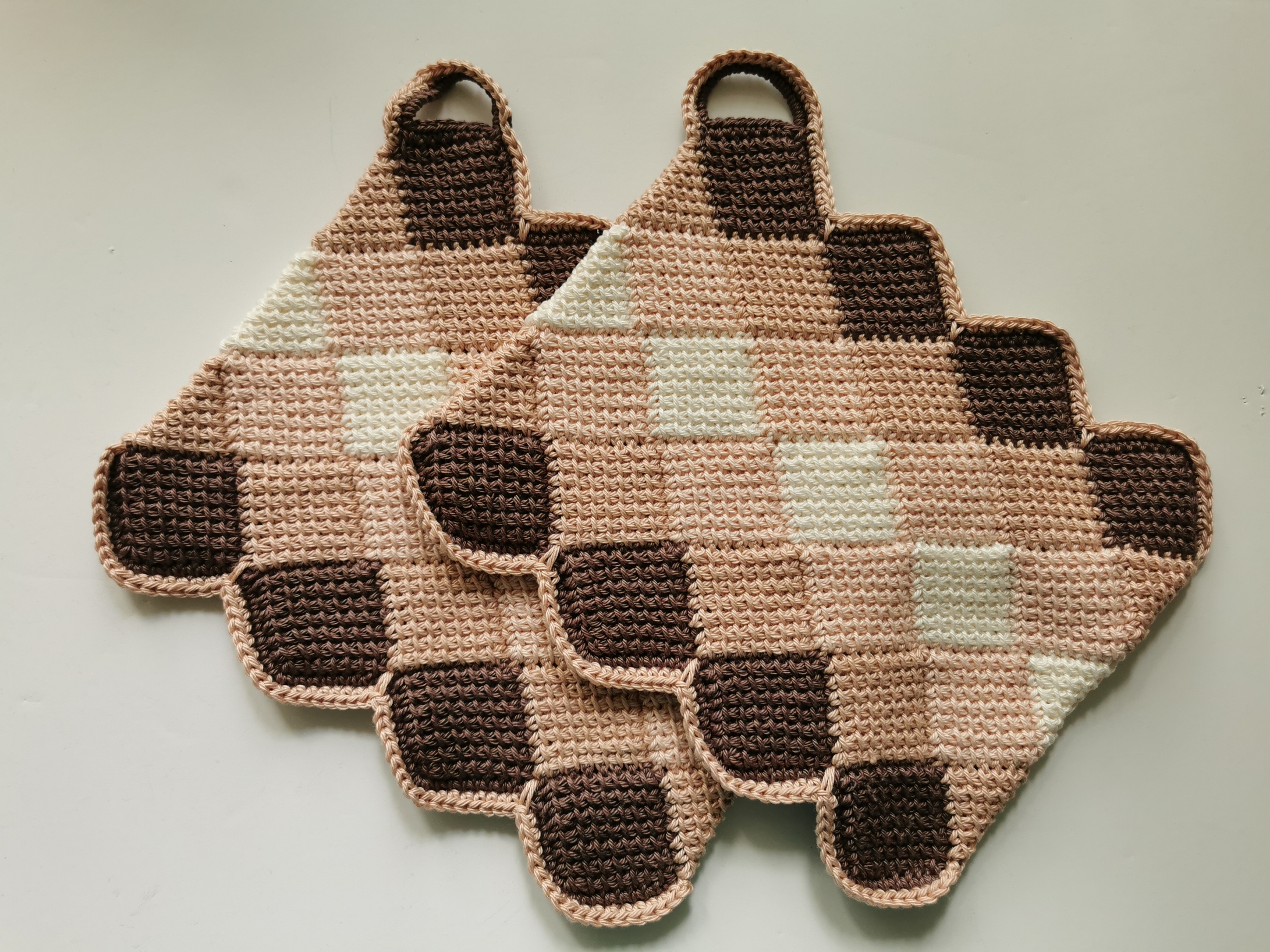 Diese wunderschönen Topflappen wurden von meiner Mutter nach tunesischer Art gehäkelt. Sie sind super griffig und dick, da doppelt gearbeitet. So gibt es keine angebrannten Finger mehr! Eine tolle Handarbeit, die ich nur wärmstens empfehlen kann. Daher biete ich sie gerne in meinem Shop an.