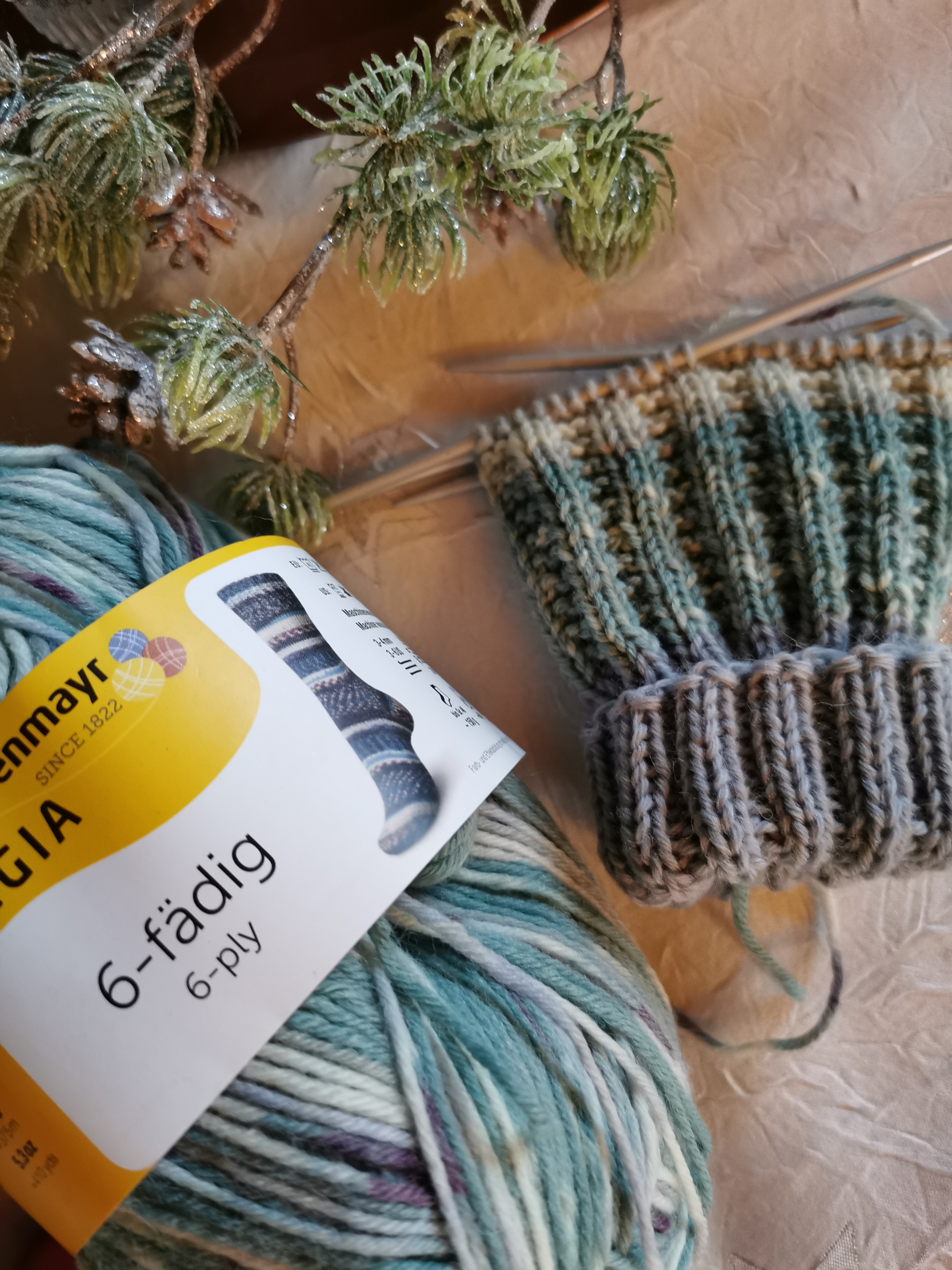 Schachenmayr Regia Color Fb. 02767 voss color und Regia Uni Fb. 01968 hellgrau