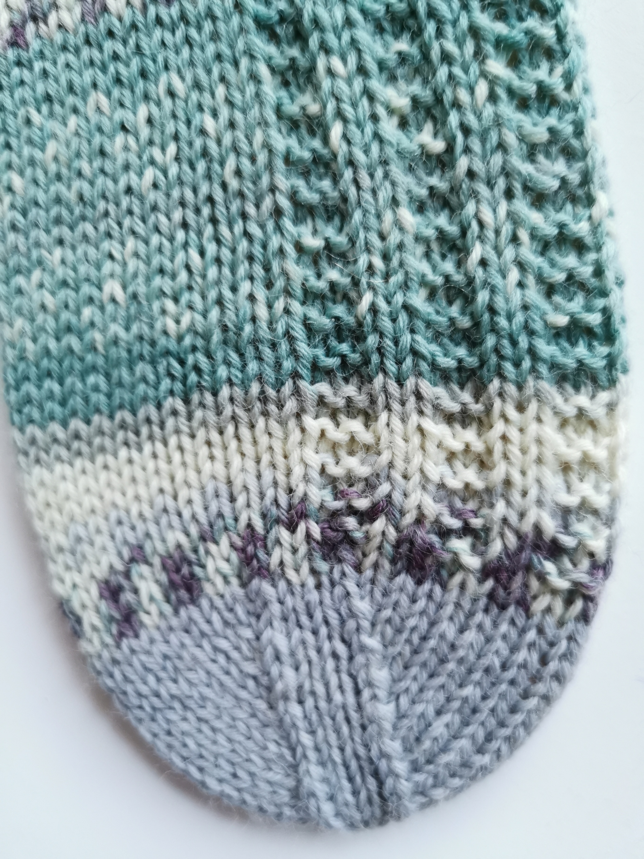 Das Muster ergibt sich aus dem Farbverlauf des verwendeten Garnes und kann nicht beeinflusst werden. Auch wenn ich mir sehr große Mühe gebe kann es vorkommen, dass die beiden Socken eines Paares nicht 100% identisch sind. Dies ist kein Grund zur Beanstandung. Sie erhalten bei mir nur handgefertigte Einzelstücke, keine maschinell hergestellte Massenware.