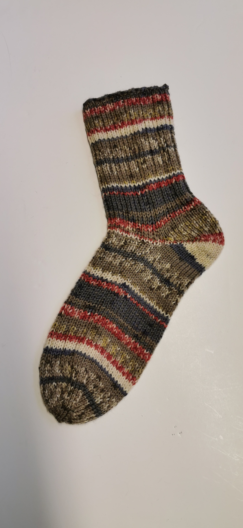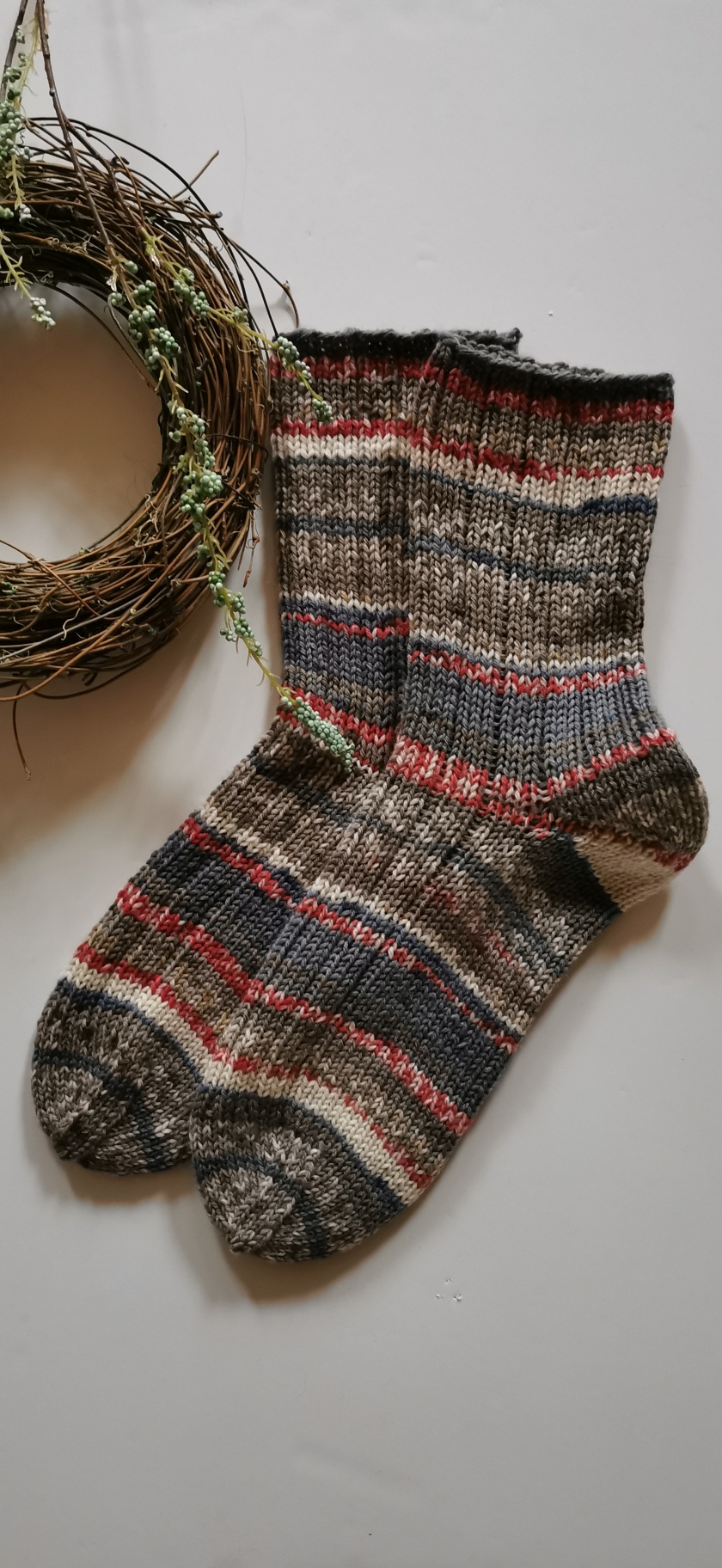 Das Muster ergibt sich aus dem Farbverlauf des verwendeten Garnes und kann nicht beeinflusst werden. Auch wenn ich mir sehr große Mühe gebe kann es vorkommen, dass die beiden Socken eines Paares nicht 100% identisch sind. Dies ist kein Grund zur Beanstandung. Sie erhalten bei mir nur handgefertigte Einzelstücke, keine maschinell hergestellte Massenware.