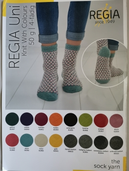 Sehr schöne 4-fädige Strumpfwolle in neuen Trendfarben. Ein kleiner Anteil andersfarbiger bunter Fasern sorgt durch einen leichten Farbschimmer jeweils für das gewisse Etwas.