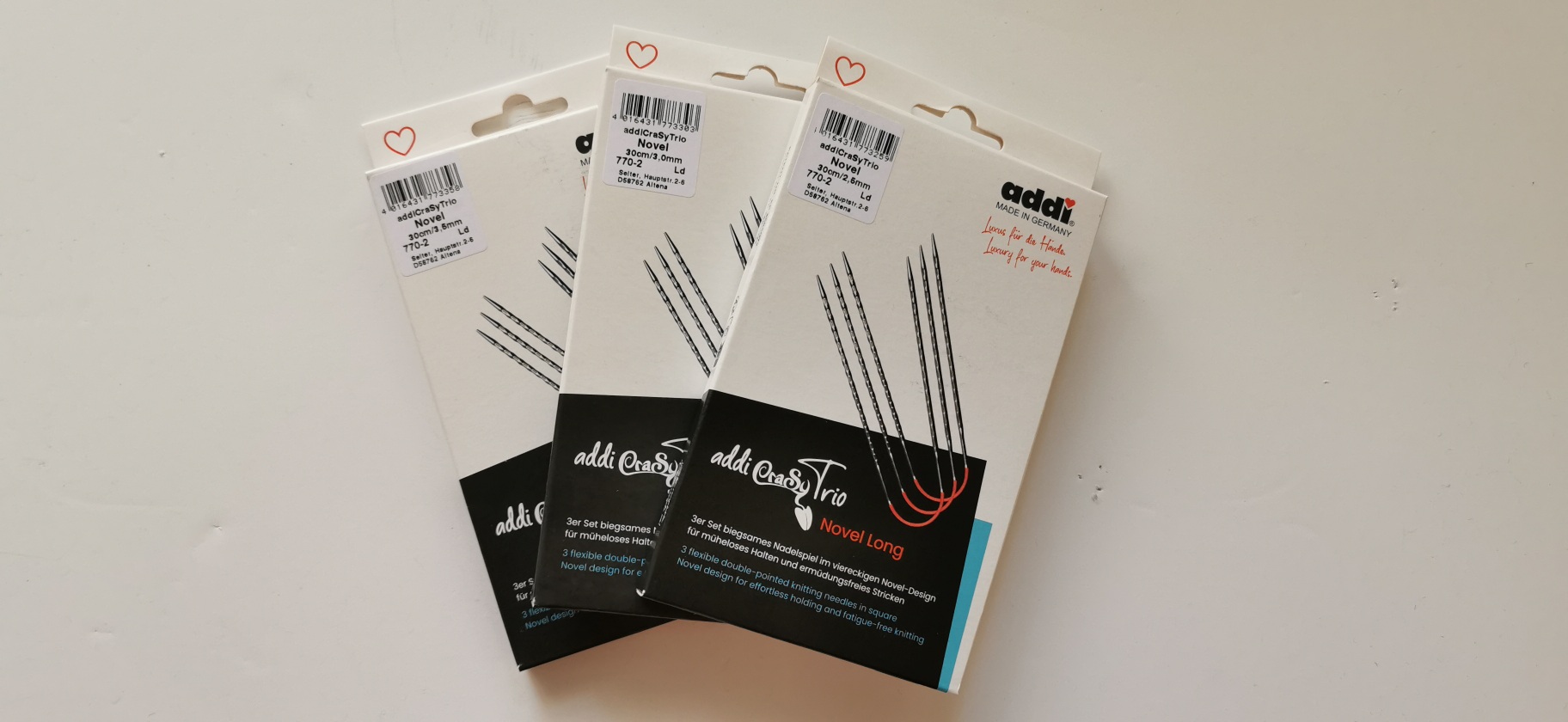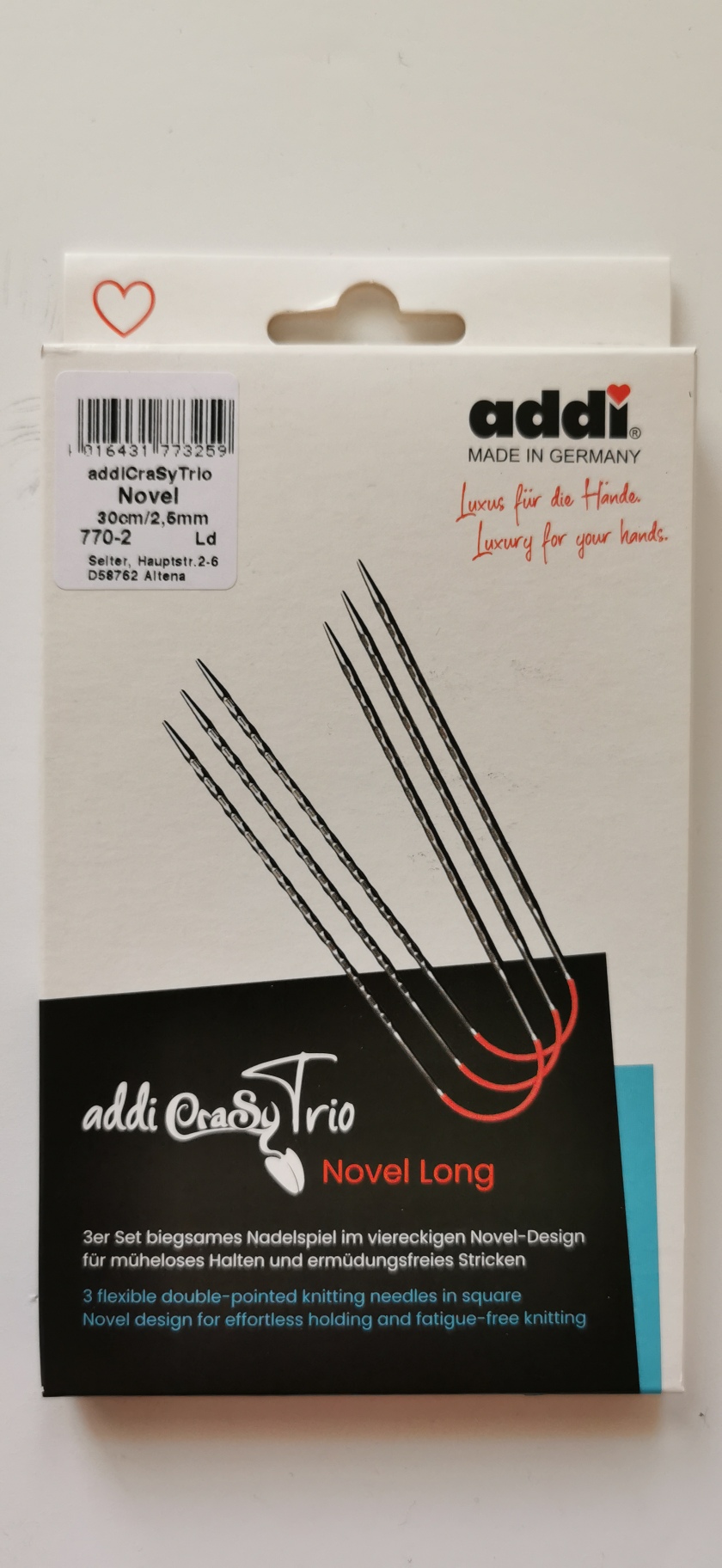 Zwei addi Innovationen haben zueinander gefunden. Novel meets addiCraSyTrio. Die viereckigen Novel-Spitzen im ergonomischen Design garantieren durch die strukturierte Oberfläche ein gleichmäßiges Maschenbild, mühelos und unverkrampft.
