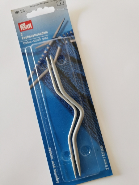 Zum Stricken von Zopfmustern unterschiedlichster Art sind die Zopfmuster-Nadeln von Prym die perfekt abgestimmten Hilfsnadeln. Durch ihre Krümmung in der Mitte lassen sich die stillzulegenden Maschen problemlos fixieren, ohne dass sie wieder von der Nadel rutschen können. So lässt sich mit ihnen nahezu jedes Zopfmuster realisieren.