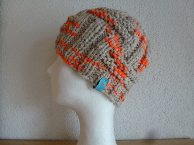 Tolle Mütze mit Strukturmuster für Damen und Herren. Das Modell wurde mit einem ca. 4cm breiten Bündchen gearbeitet. Das grobe Flechtmuster und das verwendete Garn geben der Mütze ihren besonderen Touch. Sie sitzt eher locker und lässig.