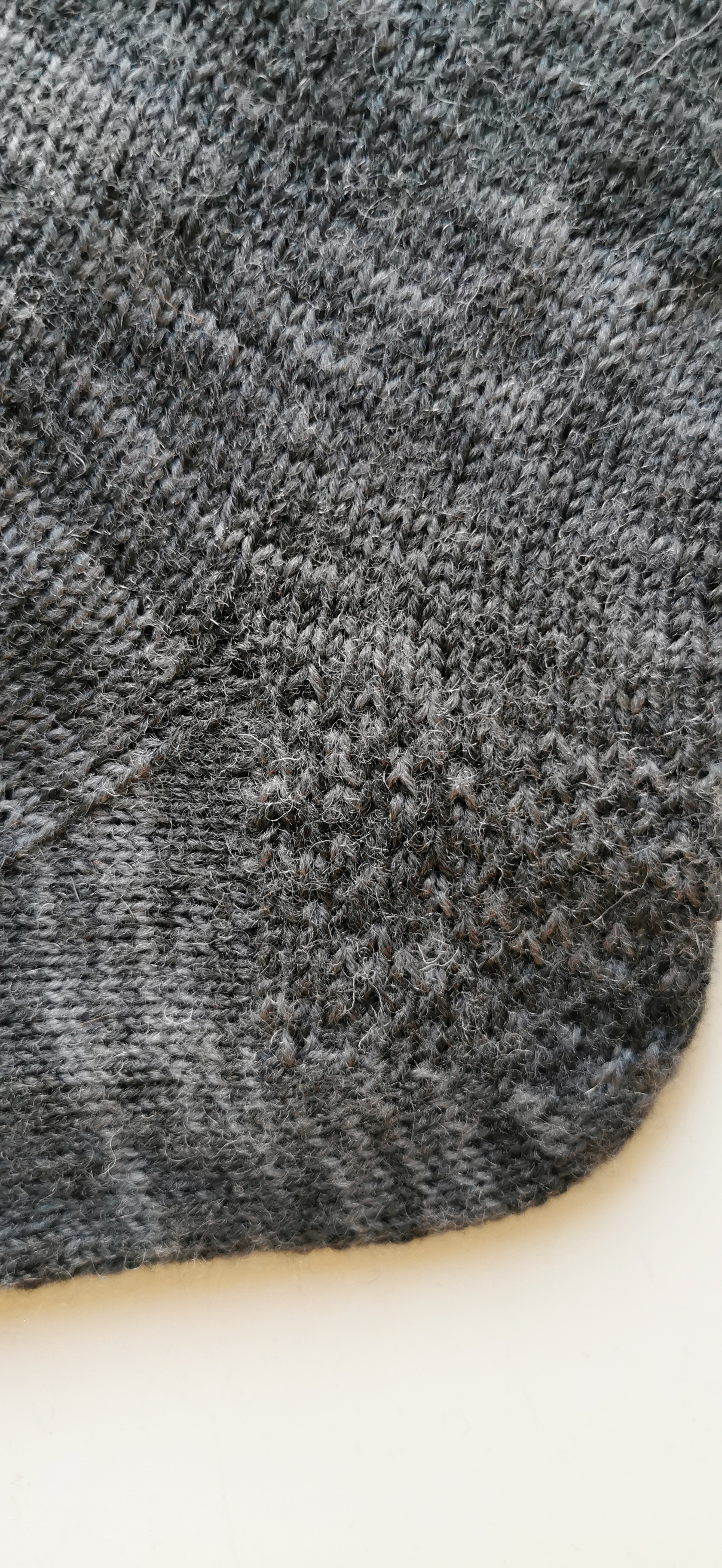 Klassisches Herrenmodell im black Denim-Look. Diese Socke hat ein ca. 3,5cm breites, geripptes Bündchen und wurde durchgehend glatt gestrickt. Lediglich die Herzchenferse wurde mit einer netzverstärkten Fersenwand versehen, die wie ein kleines Muster anmutet. Der Spickel sorgt für ausreichend Weite am Spann und hat eine sehr angenehme Passform. Die Spitze wurde als Bandspitze ausgearbeitet.