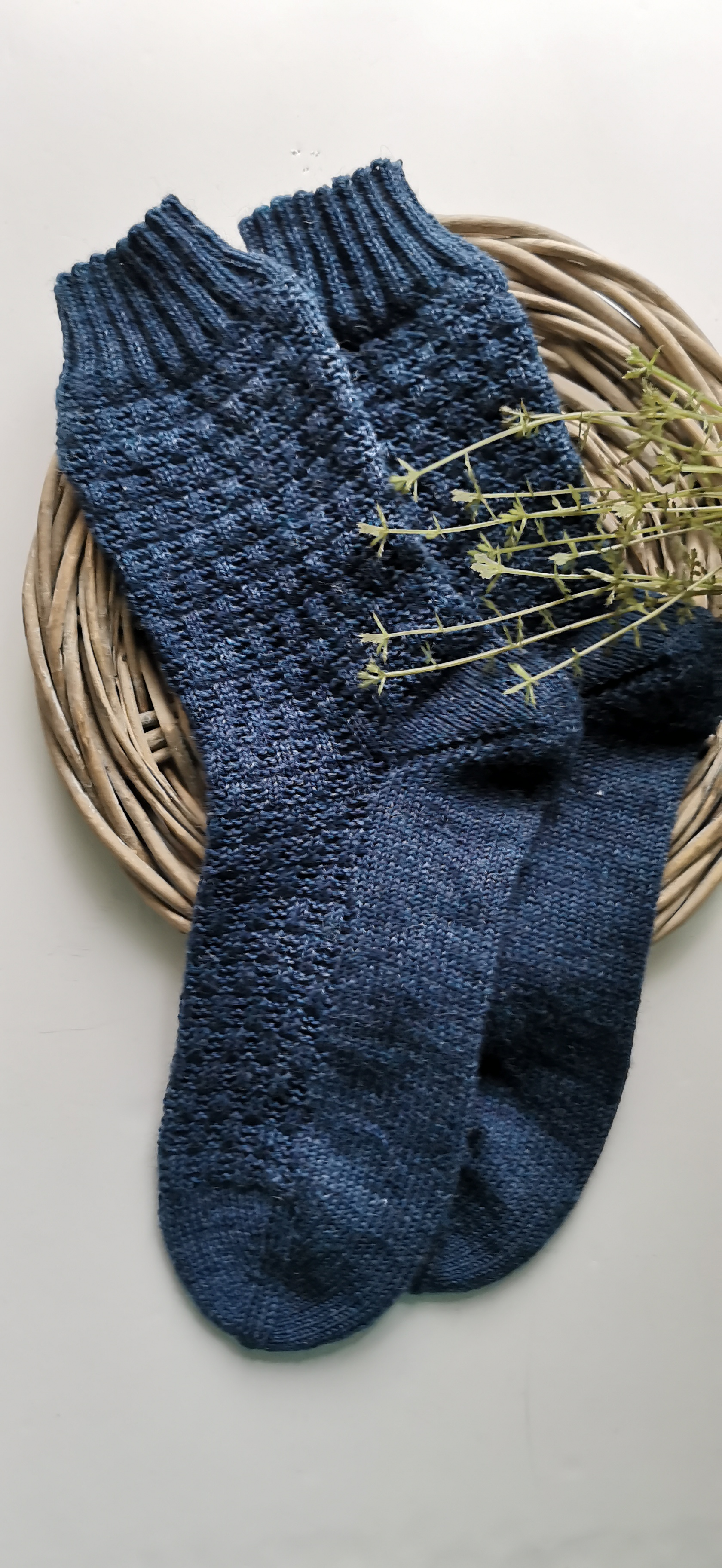 Dieses klassische Sockenpaar wurde mit einem ca. 4cm breiten, gerippten Bündchen versehen. Ein kleines Strukturmuster an Schaft und Oberfuß wertet diese Socken optisch auf. Die Sohle ist glatt gestrickt und mit Bumerangferse und Bandspitze versehen. Ein zeitloses Modell, das in keinem Schrank fehlen sollte.