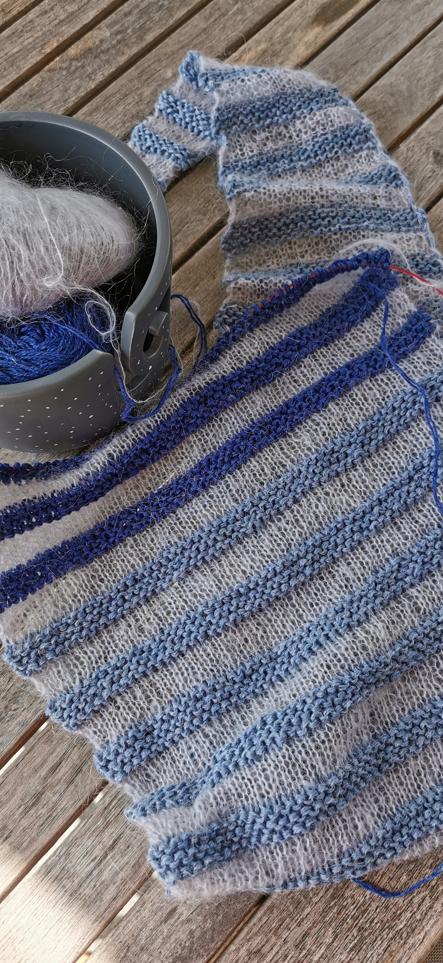 Federleichtes , handgestricktes Schaltuch in schmaler0 Dreieckform. Das Tuch ist wunderbar leicht und weich, so richtig zum Reinkuscheln. Das Streifenmuster, abwechselnd kraus rechts und glatt rechts gearbeitet, machen es zu einem absoluten Hingucker. Dazu noch eine handgemachte Quaste aus demselben Material als i-Tüpfelchen. Sie erhalten ein Einzelstück aus sehr hochwertigem Material. Achtung: das Tuch ist nicht vorgewaschen und entfaltet seinen wunderbaren Cashmere-Touch erst nach der ersten Wäsche!